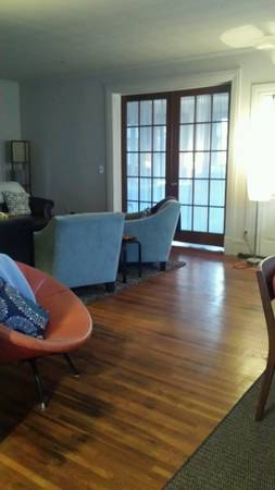 Lovely, large, sunny furnished in Turn the Century home with hardwoods, pocket doors, gleaming banisters, built ins period touches. "Just bring suitcase & laptop". Ask about our Pet Friendly Furnished Flats. Desirable South Hill address with breezy yard a few blocks to Market Street boutiques, galleries, museums, pubs, gyms, farmers market and shopping; & Corning Inc, Glass Museum, & Guthrie. High-end furnishings include Macys furniture, quality mattresses, mix of vintage, global and contemporary appointments; all items from high count linens to hangers to cutting boards | live, relax and entertain. In unit laundry & storage, private entrance, parking, turbo wifi, cable, AC, toasty heat, peaceful living. Enjoy outdoor space but close to hub-bub & highways. New Hires, Travelling Nurses, Real Estate closing gaps, Residents, Grandparents, Empty Nesters, Glass Blowers, etc.. We have a few flats - short or long term options. [*+Electric ~$40] $1580* discounted rent with 9-month minimum; $1635* discounted with 6-month minimum; $1635* Also discounted rent for travelling healthcare, active military and hospice families $1660* discounted with 3-month minimum; * > {electric may be included in any rent type for small fee} $1795 = Month to Month (every single thing, even Electric included). Local landlord with local ties and references.