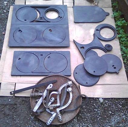 Bengal cookstove grates, woodstove or coal triplex grits, good shape, some gears, frame parts available, Kalamazoo etc.