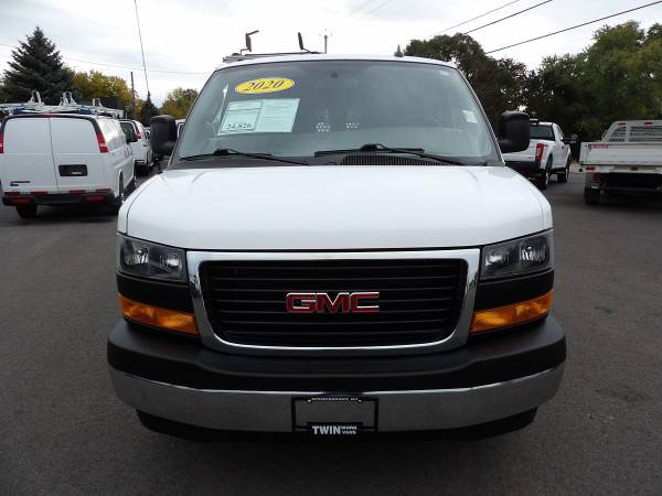 Trim: Shelves/Bins/Ladder Rack van Mileage: 103k miles Exterior Color: Summit White Interior Color: Medium Pewter Engine: 6.0L 8 Cylinders Drive: rwd Transmission: Automatic VIN: 1GTW7AFG9L1236595 Seller Comments: Built on a robust steel frame, our 2020 GMC Savana Cargo 2500 Work Van in Summit White provides a strong foundation for almost any job! Powered by a 6.0 Liter Vortec V8 offering a vigorous 341hp tethered to a heavy-duty 6 Speed Automatic transmission with a tow/haul mode so you can pull with confidence.Making your life even easier, this Rear Wheel Drive cargo van supplies a calm, composed ride plus the welcome functionality of quad halogen headlights, daytime running lamps, assist steps, and swing-out passenger-side and cargo doors.A ladder rack and metal shelves and drawers have also been installed. Our Work Van cabin is well-equipped for all-day comfort with supportive front bucket seats, air conditioning, power accessories, an AM/FM/MP3 audio system, and modern-day connectivity through WiFi compatibility.Other job-friendly benefits include 12V and 120V power outlets, multiple tie-downs, and impressive upfitting potential for your exact job requirements. GMC contributes to work-site safety with a backup camera, hill-start assist, tire-pressure monitoring, StabiliTrak stability/traction control, ABS, airbags, and more.Our Savana is always on the clock when it comes to being at your service! Save this Page and Call for Availability.We Know You Will Enjoy Your Test Drive Towards Ownership!