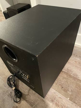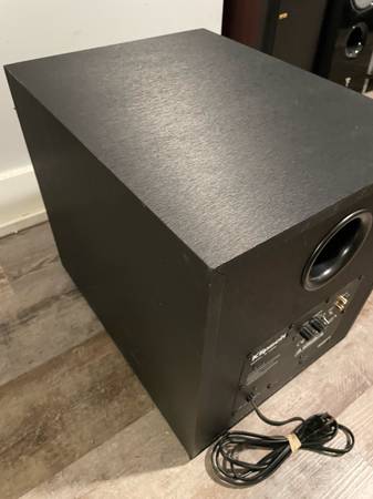 Subwoofer puts out very detailed and powerful bass. There are some small scratches and dings – see pictures for cosmetic condition. It works perfectly.