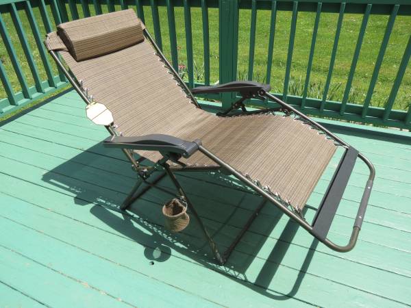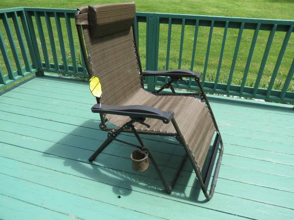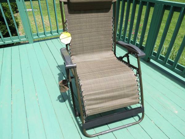 Zero gravity chair, new, head rest, cup holder, heavy duty, lots of uses. NEW, from Kohls.