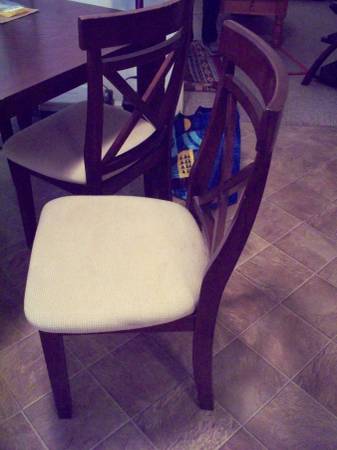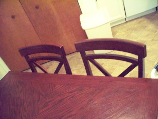 Dinette Set (dark wood) w/matching 4 chairs - Elegant, excellent condition. 4' x 35.25". $350. (Paid $700) Cash, cashiers check, or money order accepted. Purchaser responsible for transportation.