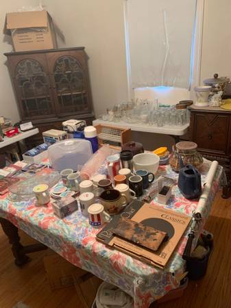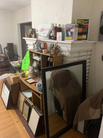 2 first floor rooms of final sale of stuff ,then it is gone.furniture,Knick nacks,picture frames,oil lamps,lights,small cabinets,sauder desk and outher cabinets,office stuff,glass ware,wire ware,etc.