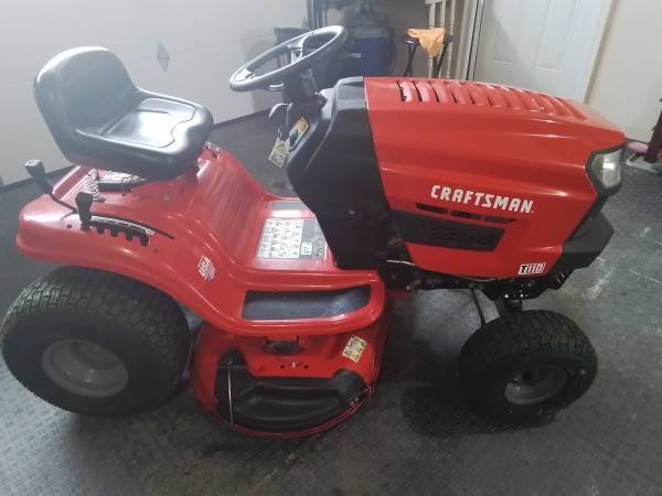 Craftsman t110 42" mower deck , b&s 17.5 hp engine, automatic drive, new battery, rebuilt deck with spindles and v belt, mulching blades plus regular blades. Has about 20 hours, always garage, i think 4 years old. Wife doesn't like the way it mows our unlevel lawn so went back to push mower, also has small trailer