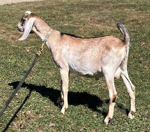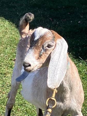 ADGA Purebred Nubian buck born March 30, will be ready to work this fall, excellent Woest-Hoeve, Tamris Farm, Wingwood genetics, come tattooed, disbudded and with registration application. $250.