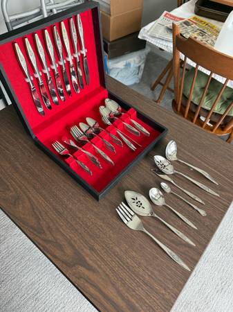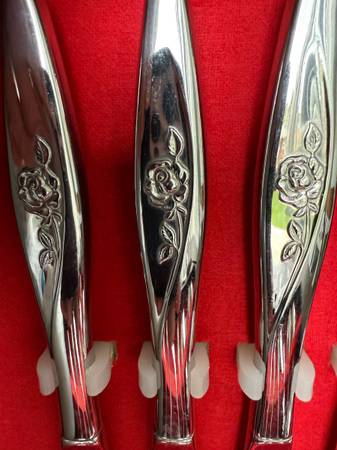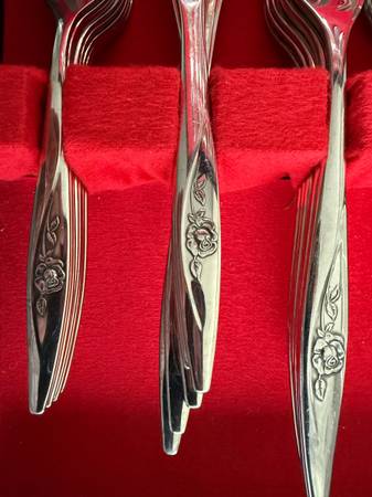 Beautiful Unused high polish 18/10 Stainless Steel. Was purchased in 1968, put away and never used ( to my knowledge) There are a total of 75 pieces These are in the LASTING ROSE pattern.This is truly a beautiful set of flatware. Check out the prices on EBay, Lasting Rose is a Collectible item. These were Manufactured right here in NYS in Oneida,NY. Downsizing from my Mother’s Estate.