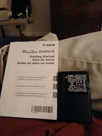 A Canon SX420IS that powers on, but does not stay on. Maybe, you can fix it? Or use it for parts. Sold as is, sale is final, cash only! Meet in a public place. Have a lovely day. 🙂
