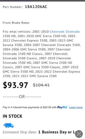 New in the box Ac delco front rotors for 3/4 ton Chevy/GMC 2001-2010.