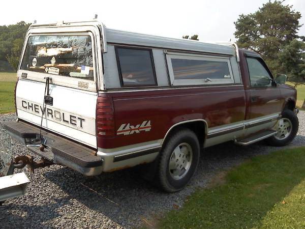 1994 Chevy Pickup for parts only. 123,000 miles. Good 350 engine that runs. Good tranny, transfer case, interior, everything in engine compartment works. Extra cap and other parts.