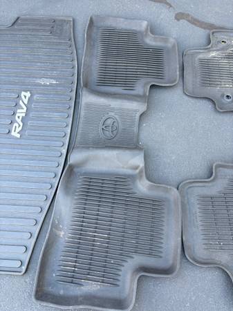 These are OEM used rubber winter floor mats for driver side, front passenger side, rear passenger side and trunk liner. All in good to excellent condition. The driver’s side is a bit dirty but still in good shape. I didn’t bother to clean them from last winter. The vehicle has been sold, this is why I am selling them.