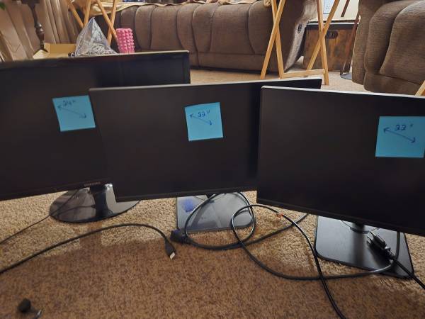 3 flat-screen, LCD computer monitors with stands, all in great shape with power cables: 1. Samsung 24", HDMI and RGB in 2. ViewSonic 22", HDMI, USB, RGB in, audio out 3. View Sonic, 22", HDMI, USB,...