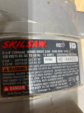 A workhorse of a circular saw. Skilsaw HD77 worm drive. Nothing wrong with it at all. It's in great shape. I've cleaned and adjusted it. Good cord, very flexible unlike cords on tools these days....