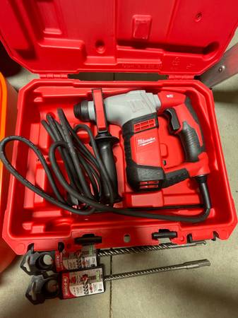 Milwaukee 5/8 sds chorded hammer drill. Never used. Bought for a project and never needed it. Includes the two bits in the picture and drill. $100 firm. Reasonable offer will be entertained. Respond through Craigslist and feel free to leave a phone number and I’ll respond promptly. Can deliver down to Watkins Glen Walmart.