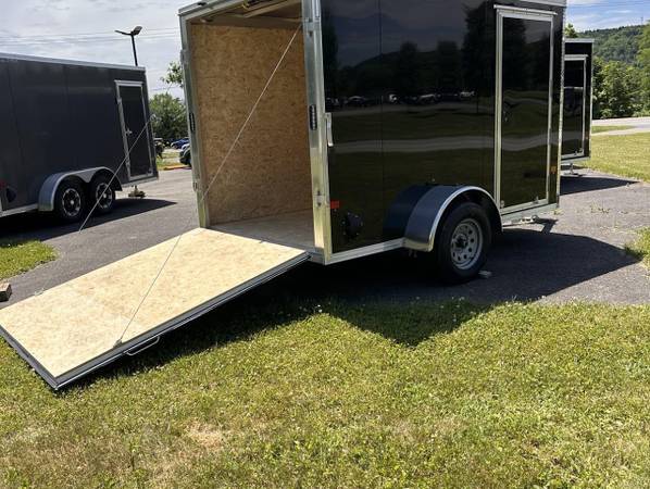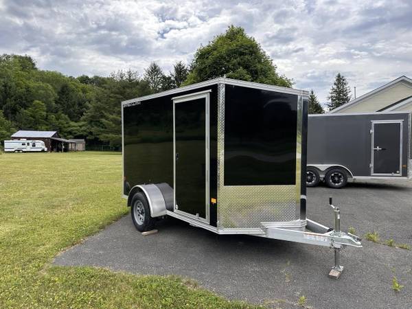 Brand-new 2024 Stealth 6x10 Slant Roof Enclosed Trailer in sleek black finish. Built tough with all-aluminum construction for durability and rust resistance. Includes 4-Year Factory Warranty.
