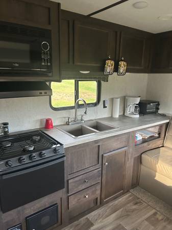 2018 Autumn Ridge in excellent condition. 23feet inside, comes with Blue Ox hitch and sway bars ($1k value), has upgraded porcelain toilet, propane heater (recently serviced) and hot water, cold a/c, everything in perfect working order. Has shower bathroom. Sleeps 5. Comes with everything, dishes, pots and pans, kitchen gadgets, microwave, toaster oven, coffee maker, even comes with the fire ring and kindling to start your first campfires. You can start camping immediately. Clean title in hand.